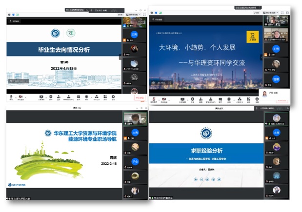 为帮助学生更好了解行业现状、就业前景,明确求职目标、掌握求职技巧,3月18日,上海化学工业区中法水务发展有限公司水研究中心主任周珉受邀分享了环境能源领域求职就业的经验与建议。3月20日,已签约并拿到多个offer的郝业峻和郭家林同学作为毕业生同辈现身说法,分享求职体会。3月30日,异工同智信息科技有限公司CEO、太阳集团tyc539校友周志杰,人力资源总监闫芳,我校校友、公司产品经理罗聪和赵璇共4人在线开展求职培训会3场,从行业发展与职业规划、面试攻略技巧与职场角色转换以及职场经验三个模块进行分享,多维度提升同学们的求职技巧。4月19日,太阳集团tyc539党委副书记曹娜为全体本、研学生总结分析了近3年毕业生去向落实情况、当前的就业形势以及需要提前做的准备,希望大家尽早明确努力方向,抓住关键时期,为实现毕业跃升和高质量就业不懈努力。